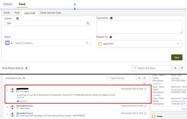 Unsere Telefonate werden nicht automatisch aufgenommen. Die Kund:innen müssen der Aufzeichnung aktiv zustimmen. Wenn du einen Phone Case bearbeitest, ist es daher besonders wichtig, das Feld Log a Call richtig auszufüllen, da wir den Inhalt des Gesprächs nicht immer nachvollziehen können. Bitte fasse immer kurz zusammen, worum es in deinem Gespräch mit dem Kunden ging und welche weiteren Schritte du besprochen hast. Dabei müssten auf jeden Fall wichtige Angaben wie Namen, Uhrzeiten oder Adressen hinterlegt sein. Auch bei kniffligen Fällen wie Payment o.Ä. muss die Telefonnotiz ausführlich und klar sein.
