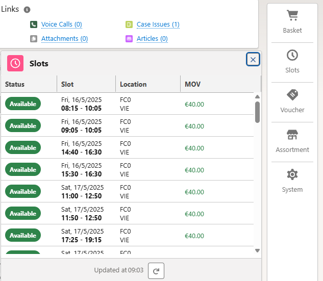 Die nächsten verfügbaren Lieferzeiten für den Kunden findest du unter Available Slots.