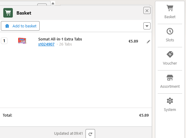 Über den Customer’s Basket kannst du auf den bestehenden Warenkorb der Kund:innen zugreifen, Gratisprodukte hinzufügen oder Artikel löschen.