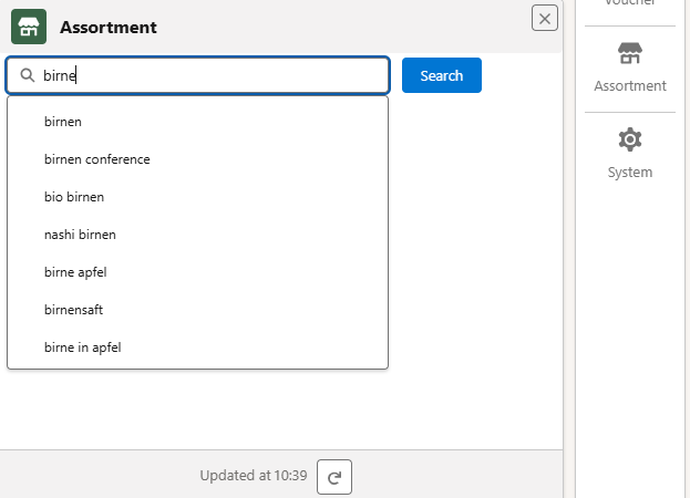 Über Assortment Search findest du Produkte aus unserem Sortiment. Darunter findest du auch die Assortment Questions.