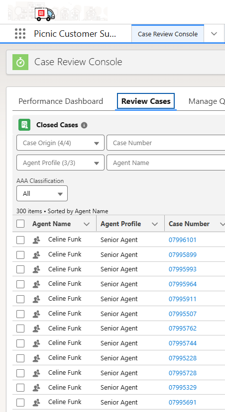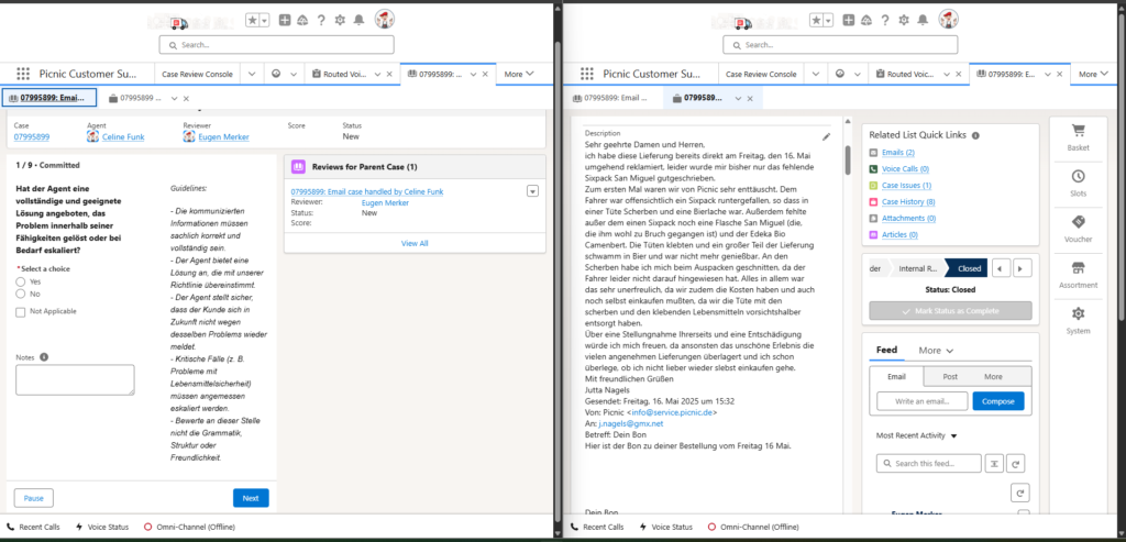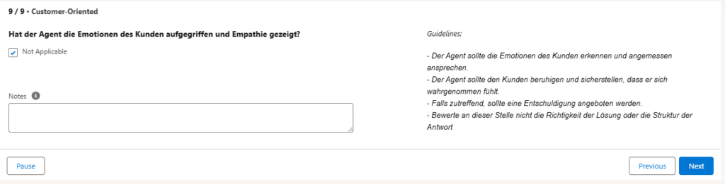 In der Case Review Console könnt ihr, nach dem eure SV damit durch sind, die selben Cases nochmal bewerten und eure Sicht dazu zeigen. So könnt ihr zum einen eure Qualitätsentwicklung im Blick behalten, sehen, worauf eure SV Wert legen und feststellen, ob irgendwo Schwierigkeiten vorliegen. Der Ablauf ist dabei für SVs und Agents gleich: